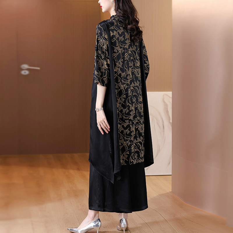 阔太太香云纱套装 洋气印花拼接长款 时尚 两件套春夏新款 衬衫 阔腿裤由