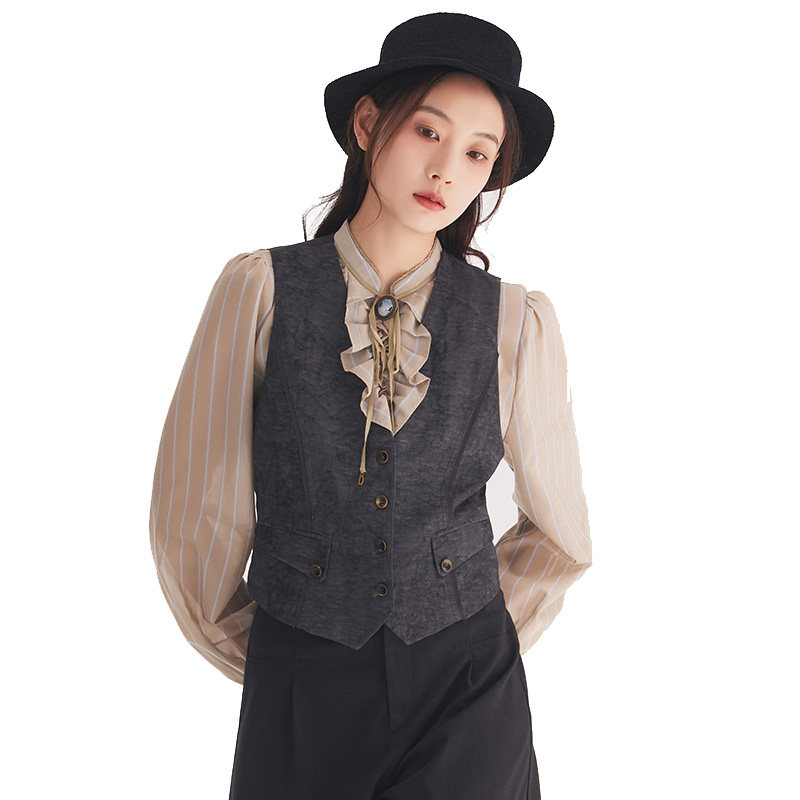 迪哈利春秋新款 深灰色提花水洗真丝马甲DH241Q97016D HARRY
