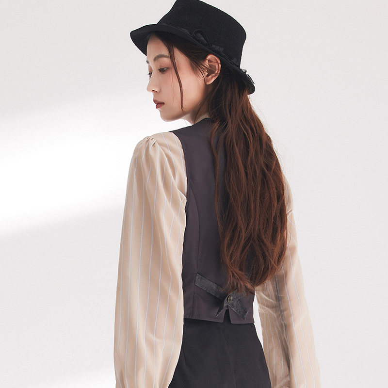 花铃太太原创jk制服清谭大韩式 针织叠穿学院风黑马甲 制服背心女款