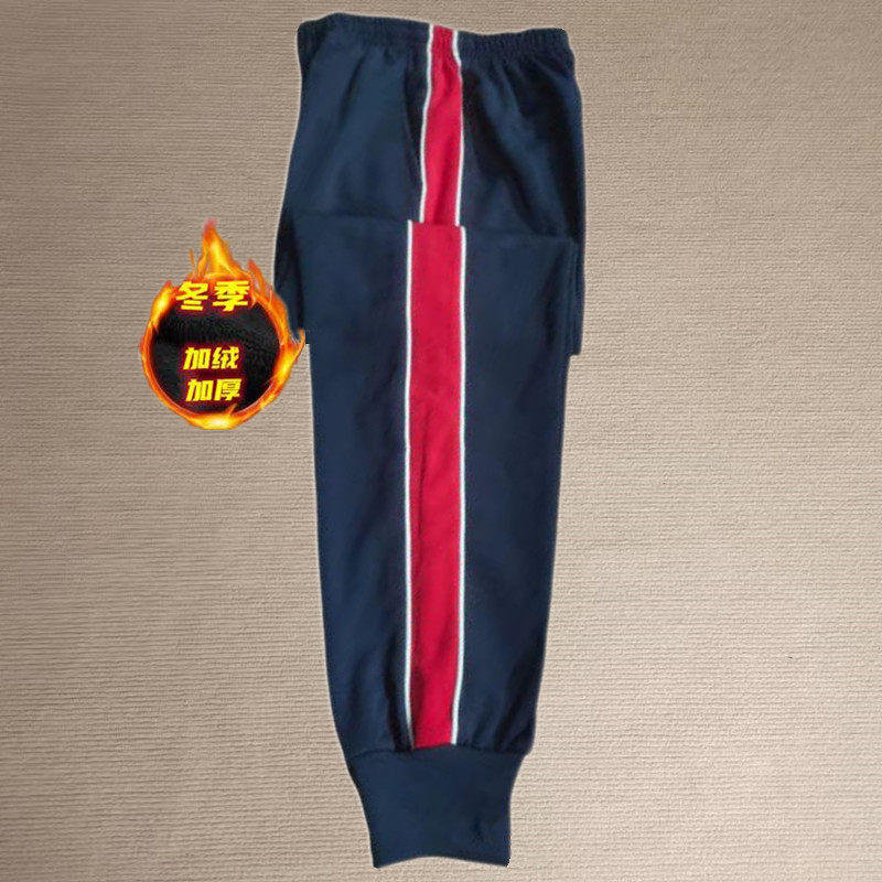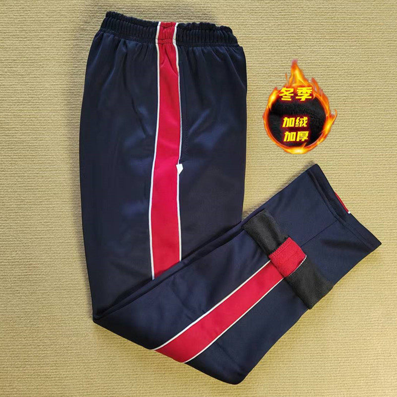 加绒校服裤 初中高中小学生宽条男女校裤 薄款 红宽条加白细条运动裤