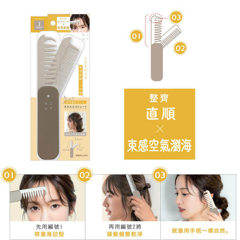 TRENDY日本折叠梳蓬松刘海梳便携随身梳子多功能疏密齿 LUCKY由