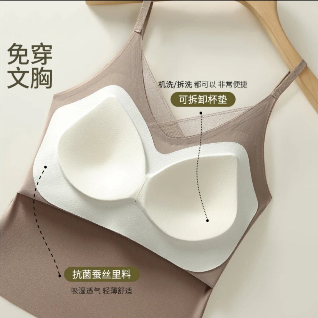 自带胸垫内衣女内搭隐形粉底液美背防走光文胸吊带 无痕背心一体式