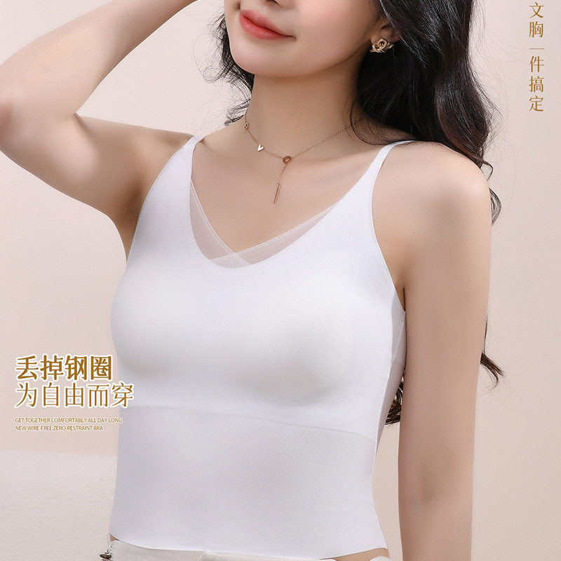 361背心带胸垫女吊带内搭美背内衣文胸一体春夏打底白色外穿上衣