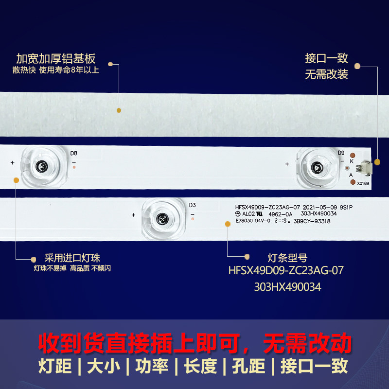 为您提供商品适用三星UA49NU7000JXXZ电视灯条HFSX49D09 07303HX490034 ZC23AG的详细介绍,