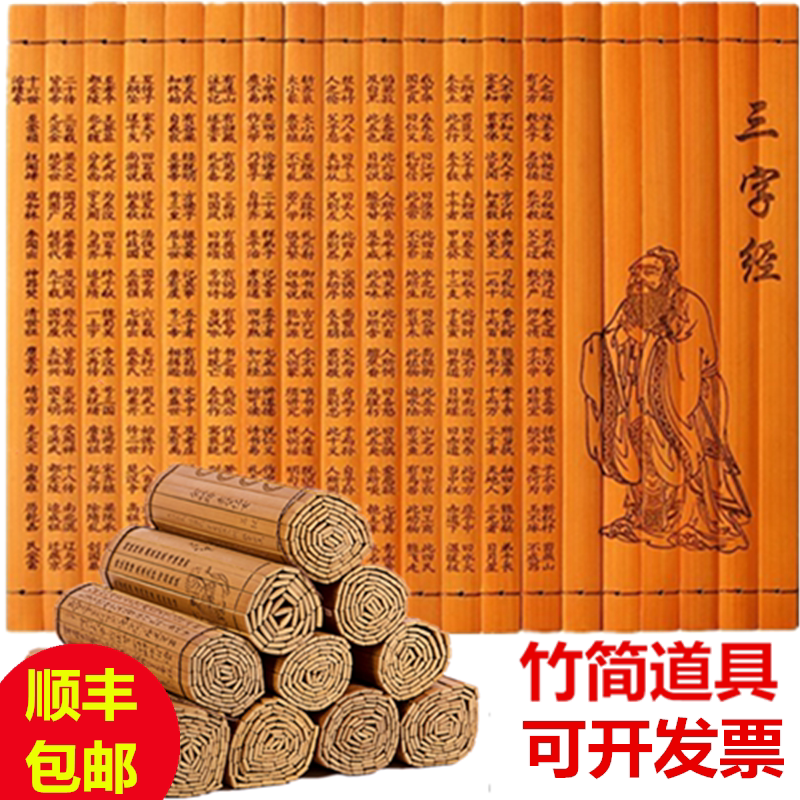 竹简书卷儿童表演道具三字经弟子规论语千字文古风手书定制批发由