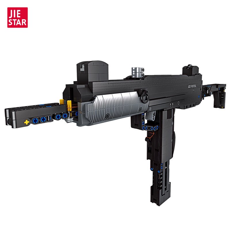 杰星58021 积木玩具模型摆件 2英雄联盟系列UZI冲锋枪狙击步枪拼装由