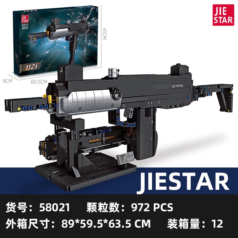 杰星58021 积木玩具模型摆件 2英雄联盟系列UZI冲锋枪狙击步枪拼装
