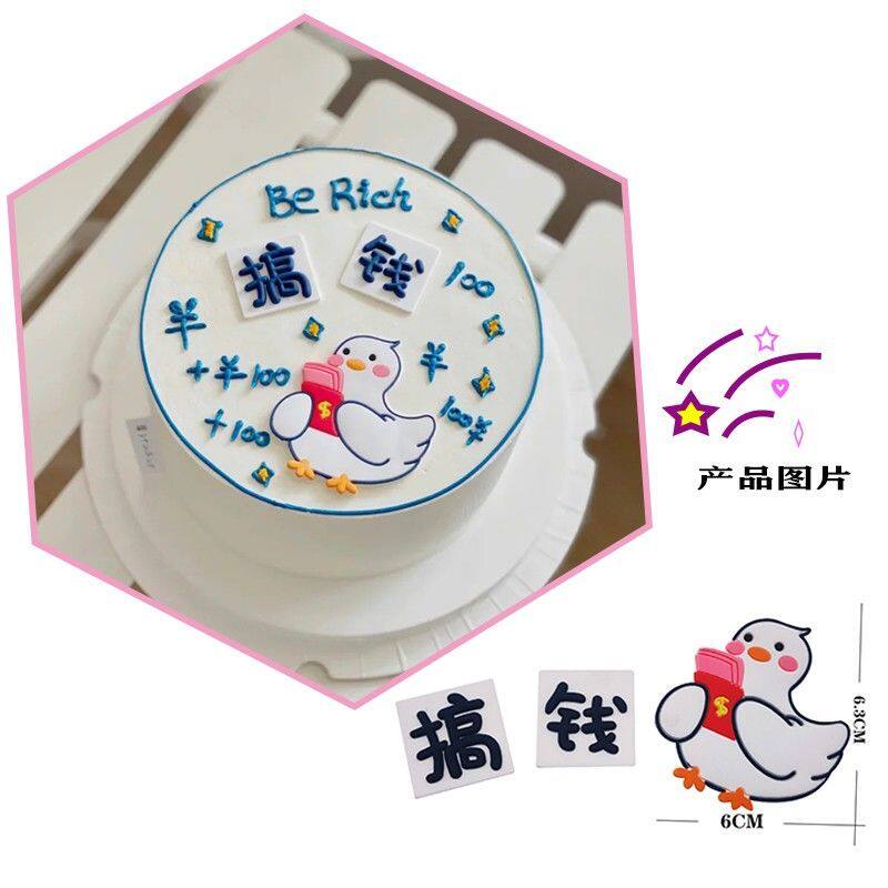 饰摆件狮子头儿童宝贝生日蛋糕烘焙插件 软胶小熊小猪搞钱鸭蛋糕装由
