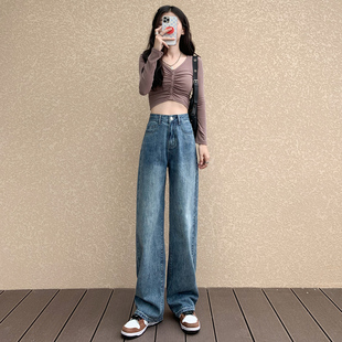 150小矮个子显高拖地长裤 小码 垂感宽松阔腿裤 女春夏季 窄版 牛仔裤