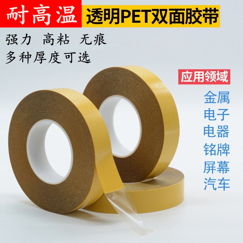 为您提供商品0.1 0.15mm厚 超薄强力无痕耐高温双面胶带电子电器工业铭牌固定防水可移双面胶带0.05 PET透明双面胶带的详细介绍,