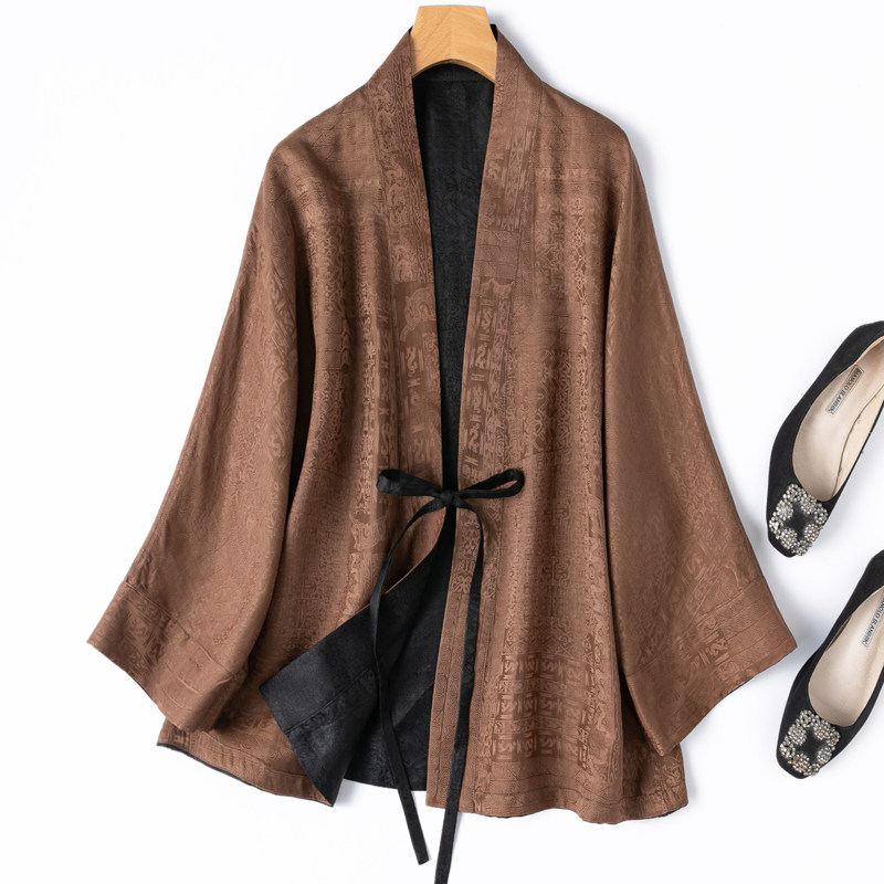 外套新中式 老料战国策 开衫 宽松廓形七分袖 双面穿 香云纱新中式