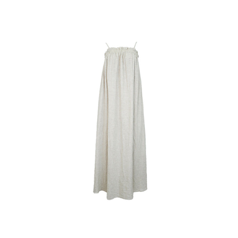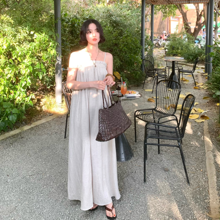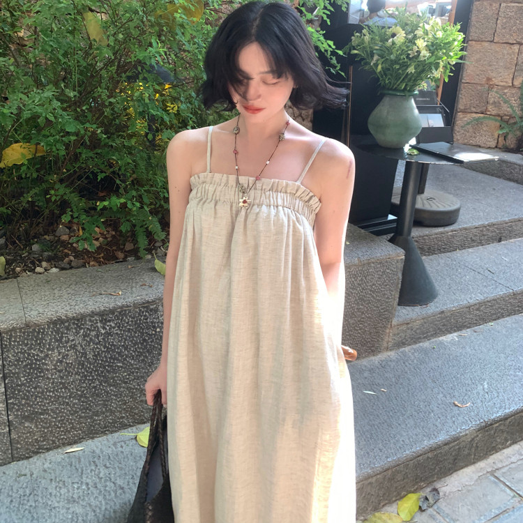 酒午法式 新款 天丝亚麻吊带连衣裙宽松长款 度假裙子女 复古2025夏季