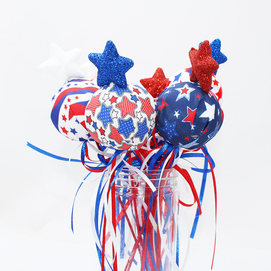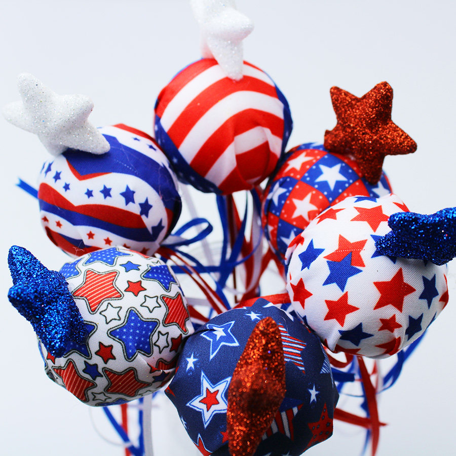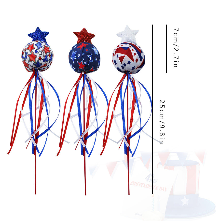 仿真花仿真树星星爱国红白蓝五角星加包布球插枝 6件装