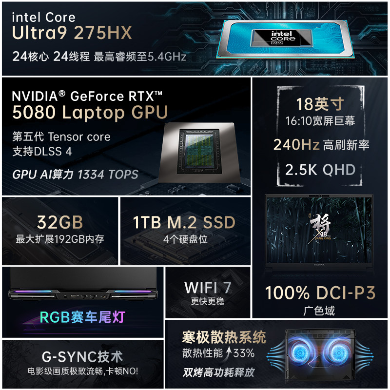 MAX RTX5080新款 独显直连电竞游戏本 将星X18 275HX 七彩虹 Colorful 全国多地国补降20% Ultra9