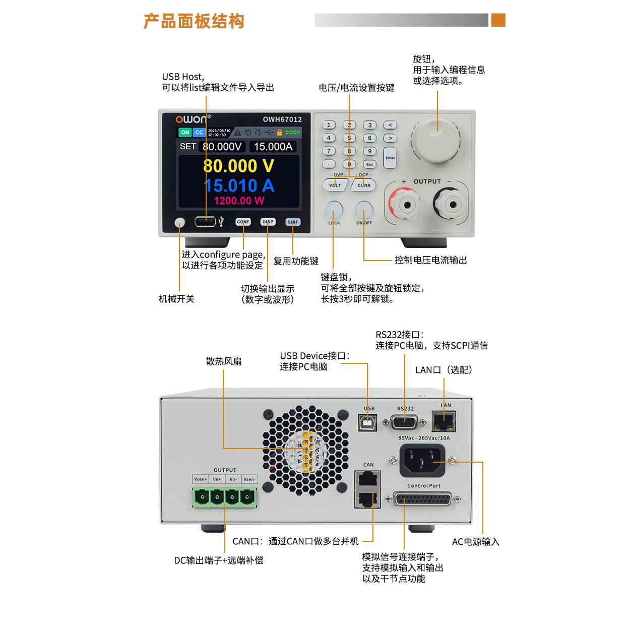 3000W光伏模拟器LAN 利利普OWON大功率OWH67可编程直流电源1200W由