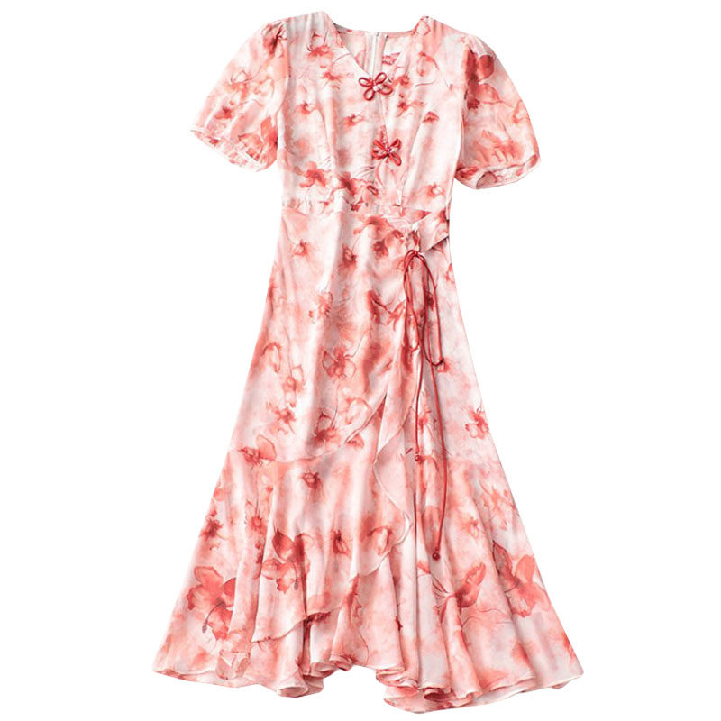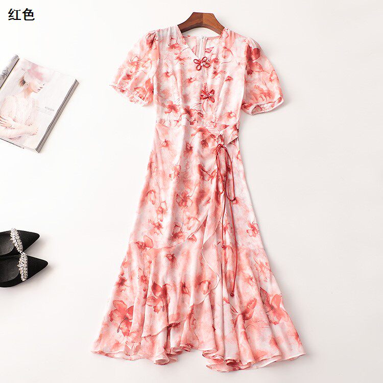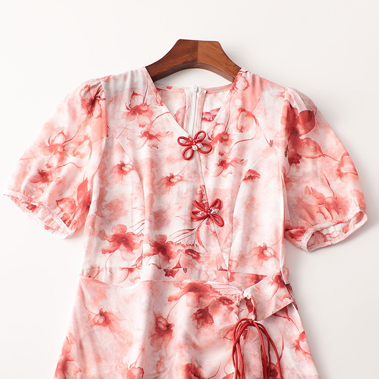碎花女人味夏V领短袖 印花连衣裙 洋气法式 243230清货超值精品女装