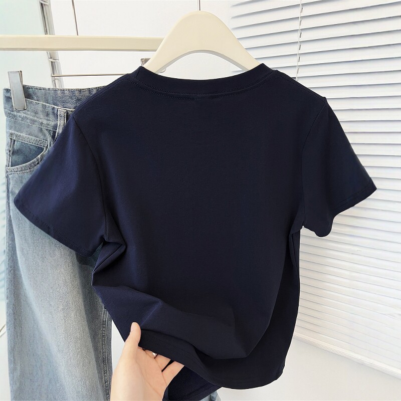 正肩短袖 T恤女设计感小众百搭圆领上衣ins潮 新款 可爱卡通印花夏季