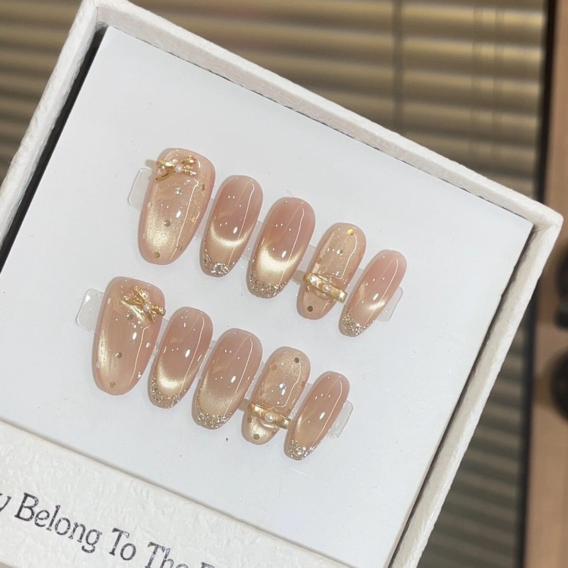 气质金粉少女纯手工穿戴甲轻奢显白假指甲贴穿戴美甲可拆卸温柔