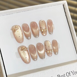 显白猫眼甲片短款 美甲指甲贴片 高级感中长款 手工穿戴甲2026新款
