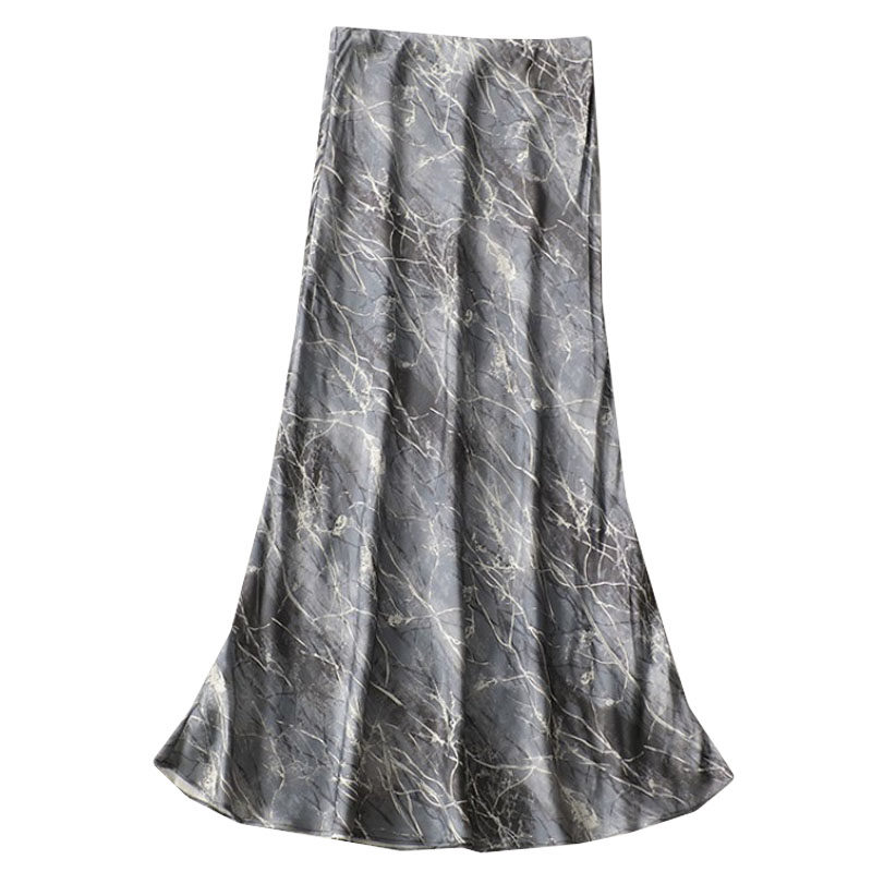 进口醋酸缎面丝滑垂坠显瘦松紧腰A字中长款 半身裙 memory commuse