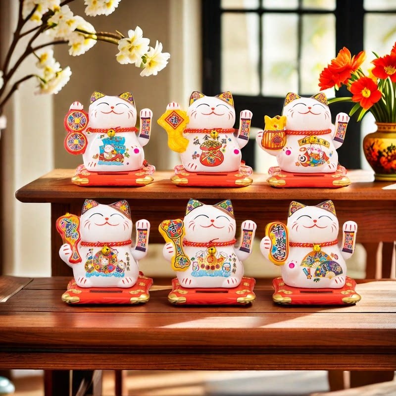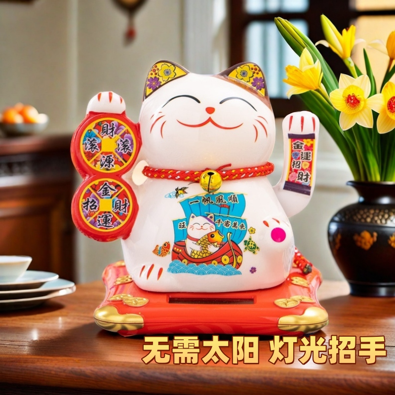 招财猫摆件自动招摇手太阳能车载办公室家用店铺发财招财2026新款