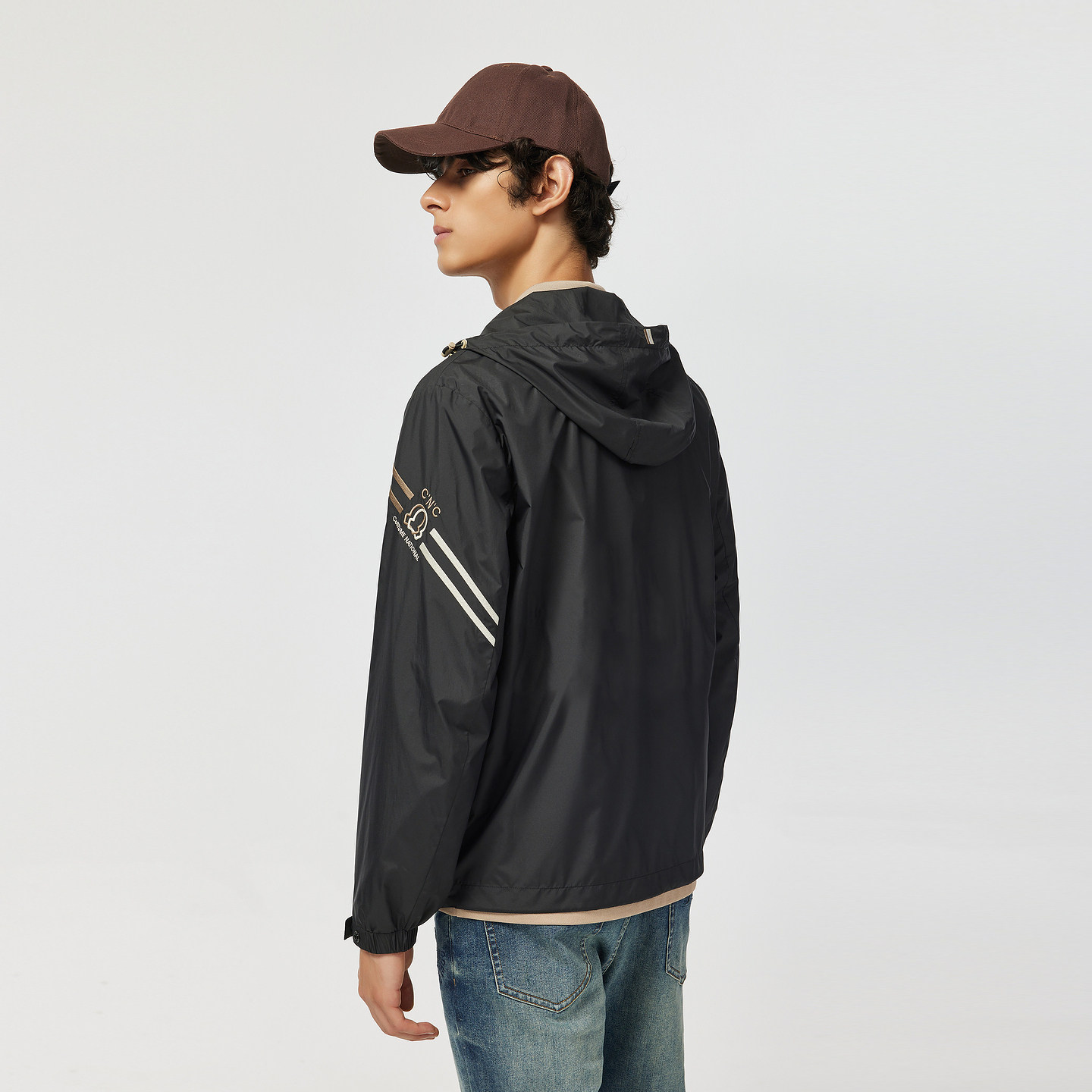 为您提供商品薄款 CNC男装 26春季 新款 运动休闲撞色条纹外套 黑色连帽夹克男时尚的详细介绍,