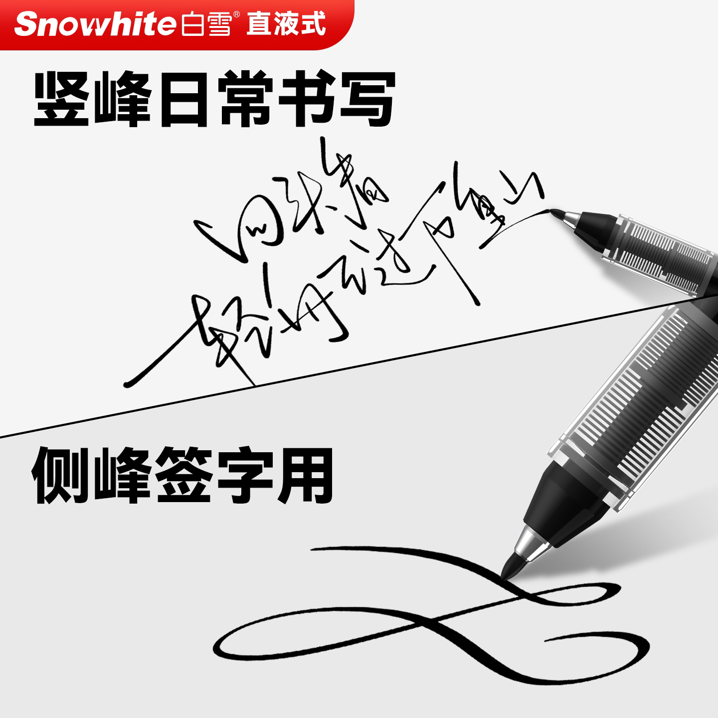 签字笔商务高档红色签字笔红笔老师专用高颜值红笔粗头批改1mm黑笔速干顺滑水性笔圆珠笔中性笔S1 白雪直液式
