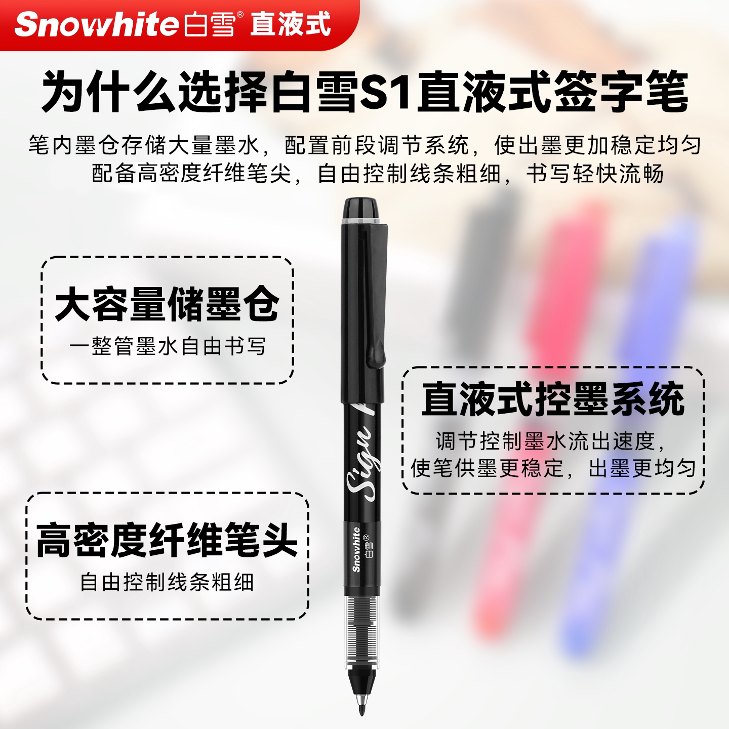 为您提供商品签字笔商务高档红色签字笔红笔老师专用高颜值红笔粗头批改1mm黑笔速干顺滑水性笔圆珠笔中性笔S1 白雪直液式的详细介绍,