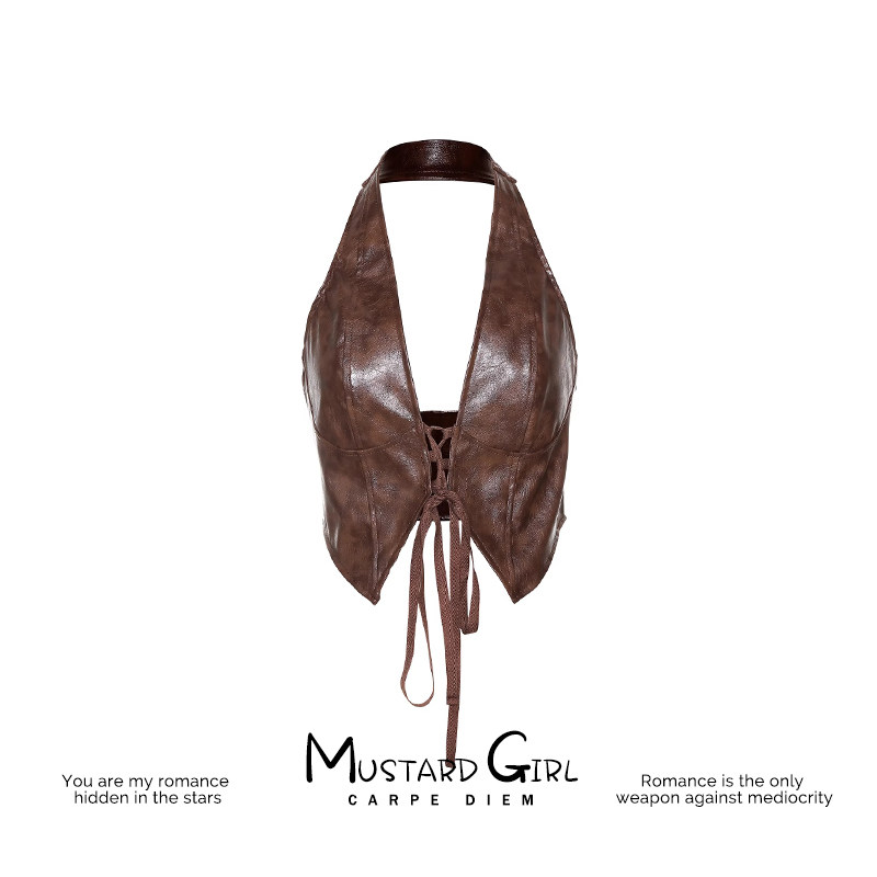 欧美露背系带pu皮开衫 女上衣 2025新款 性感辣妹挂脖吊带背心女夏季由