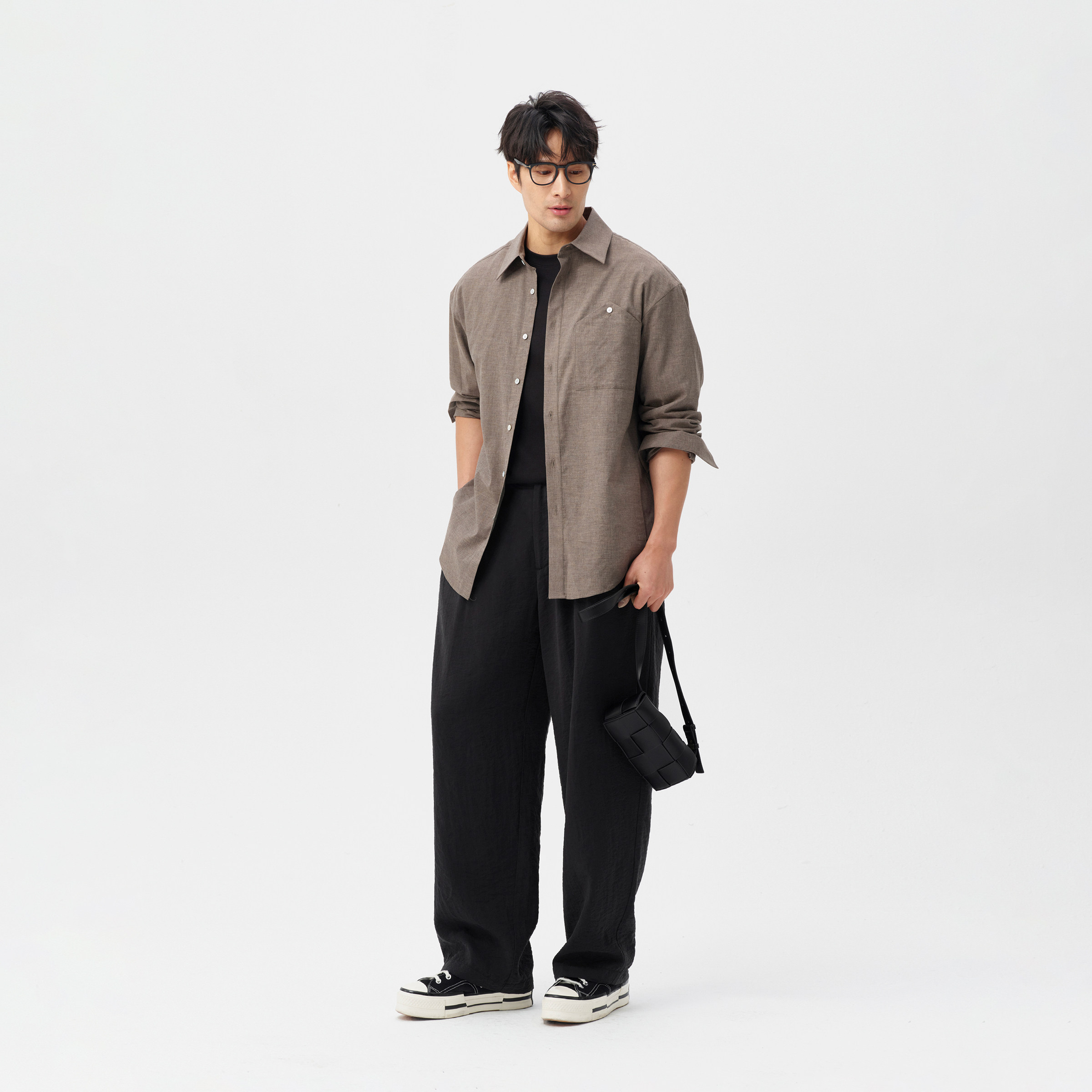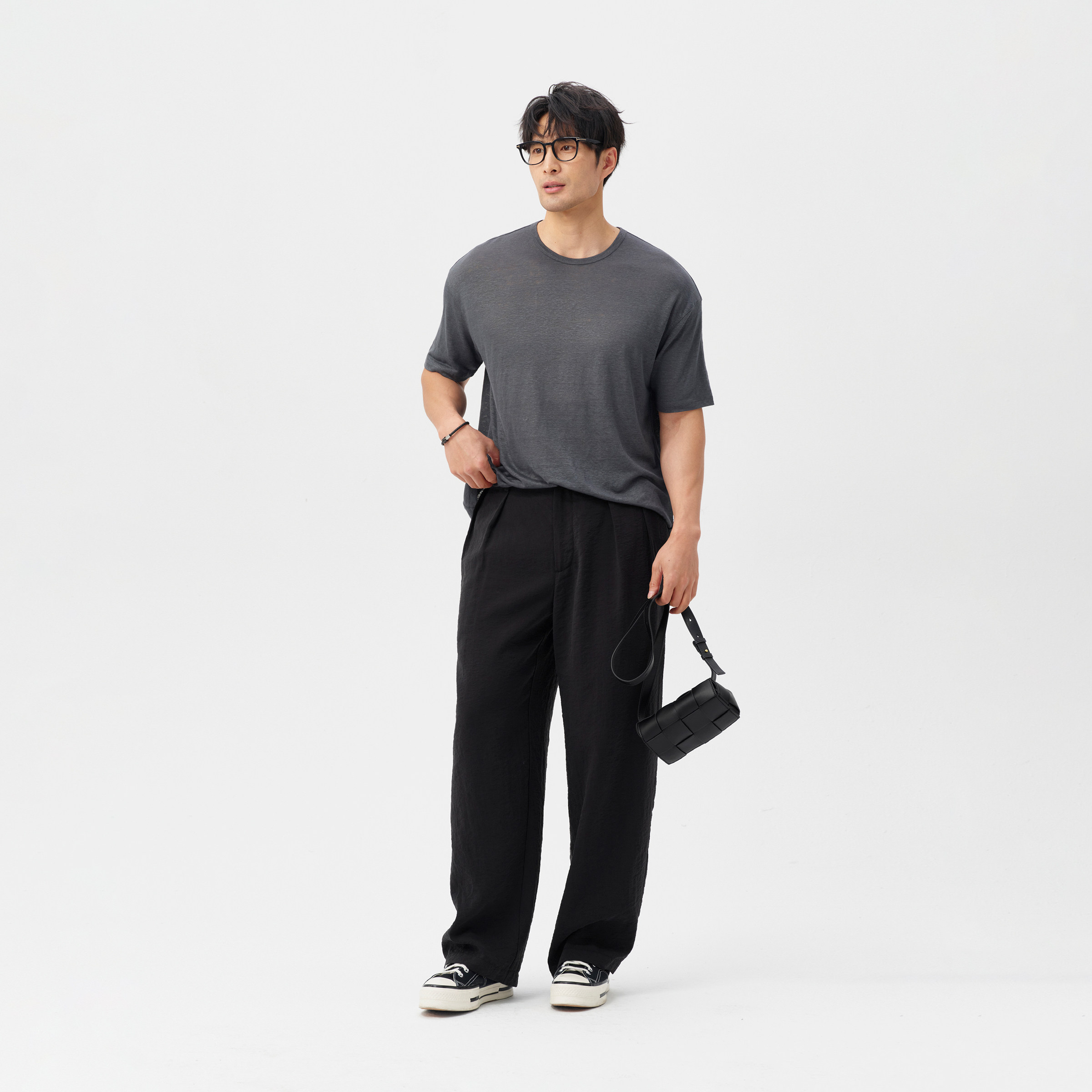 LEZORA 真丝干丝drysilk 双褶大直筒休闲裤 男 17姆米lemair@e同款由