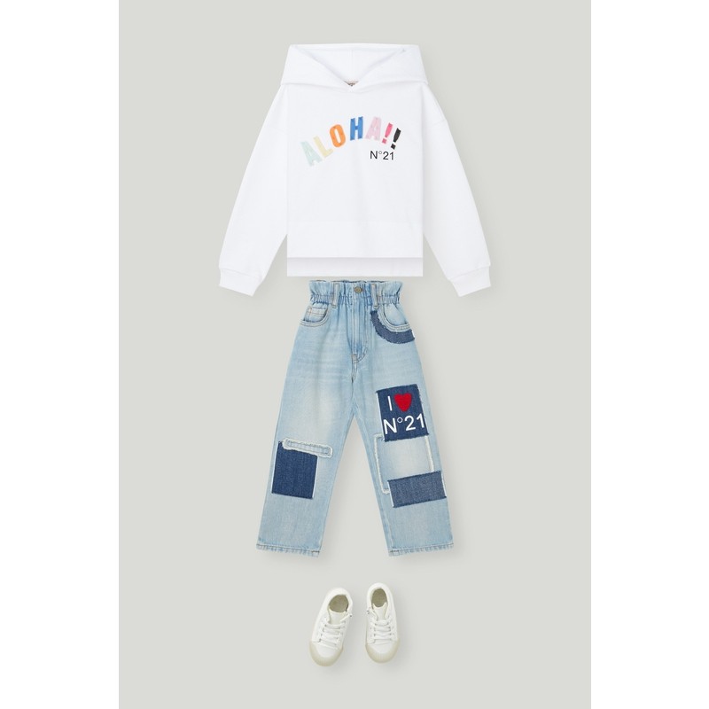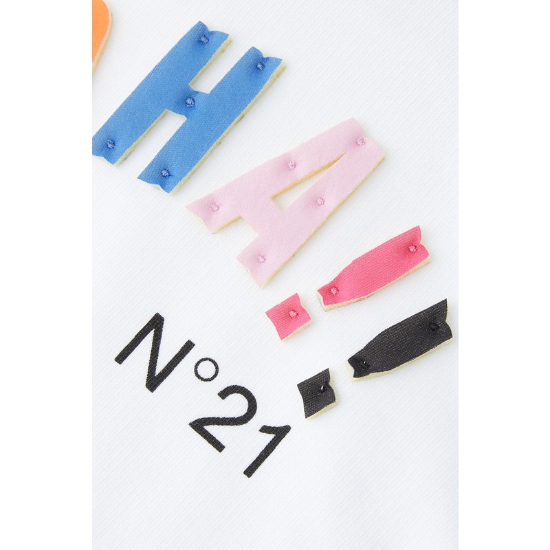 末折扣 N°21 秋冬女童贴花印花棉质连帽白色卫衣 季