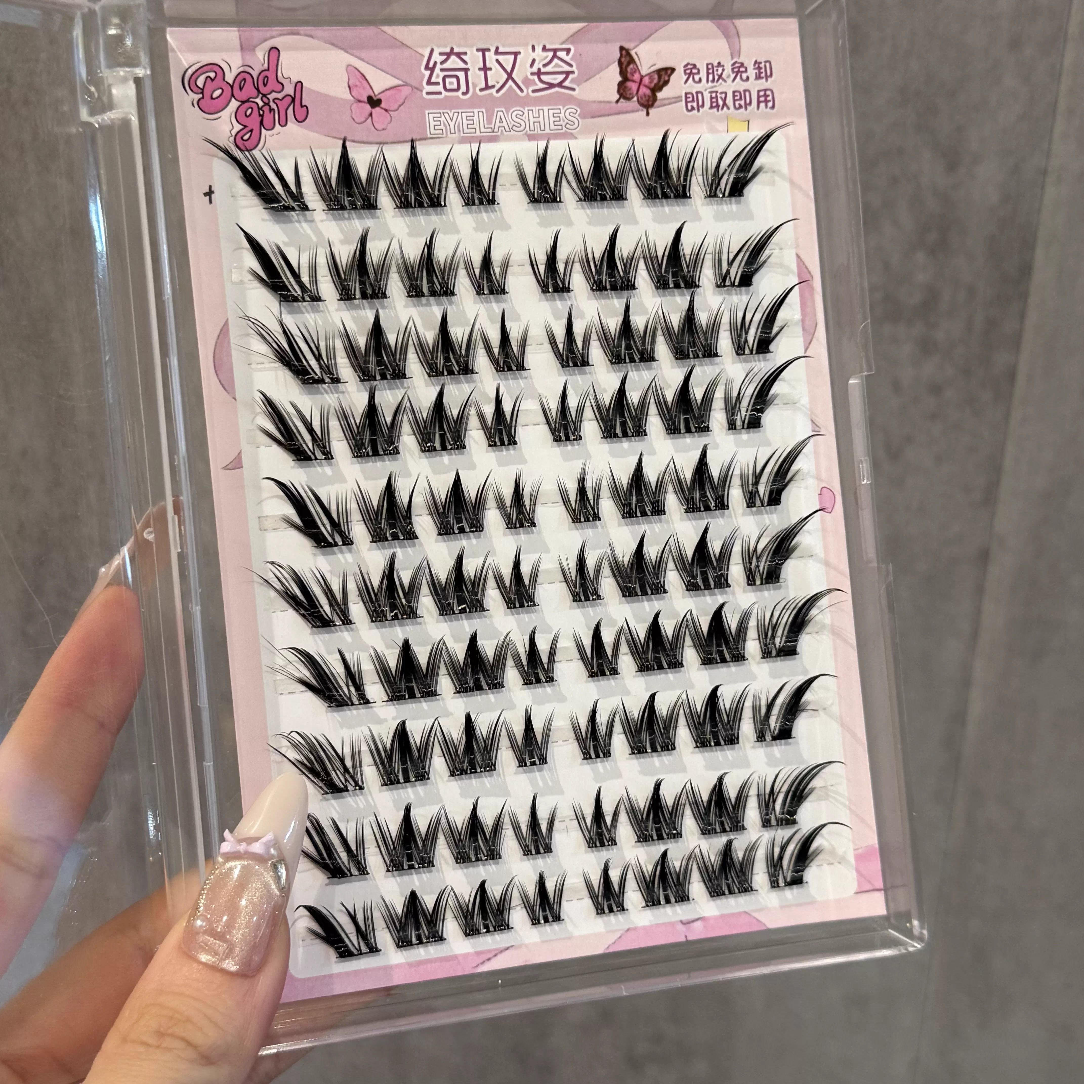 免胶水自粘无梗假睫毛重复使用婴儿弯自然仿真超软空鱼尾眼睫毛贴