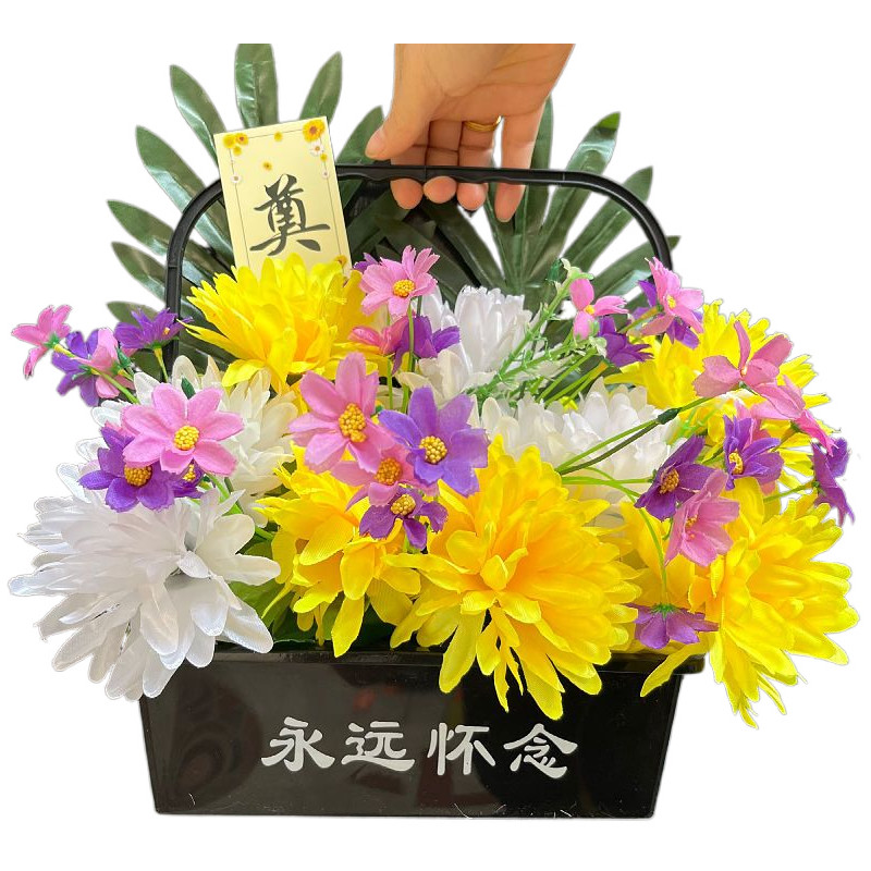 饰花绢花 清明节祭祀仿真花菊花扫墓花束上坟花灵堂摆放花篮墓碑装