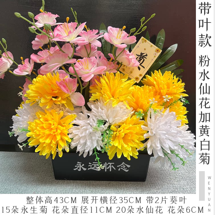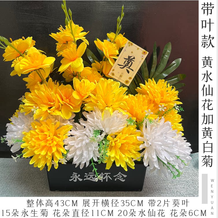 饰花祭祀追悼用品奠仪用花 清明节仿真花黄白色菊花仿真花篮墓碑装