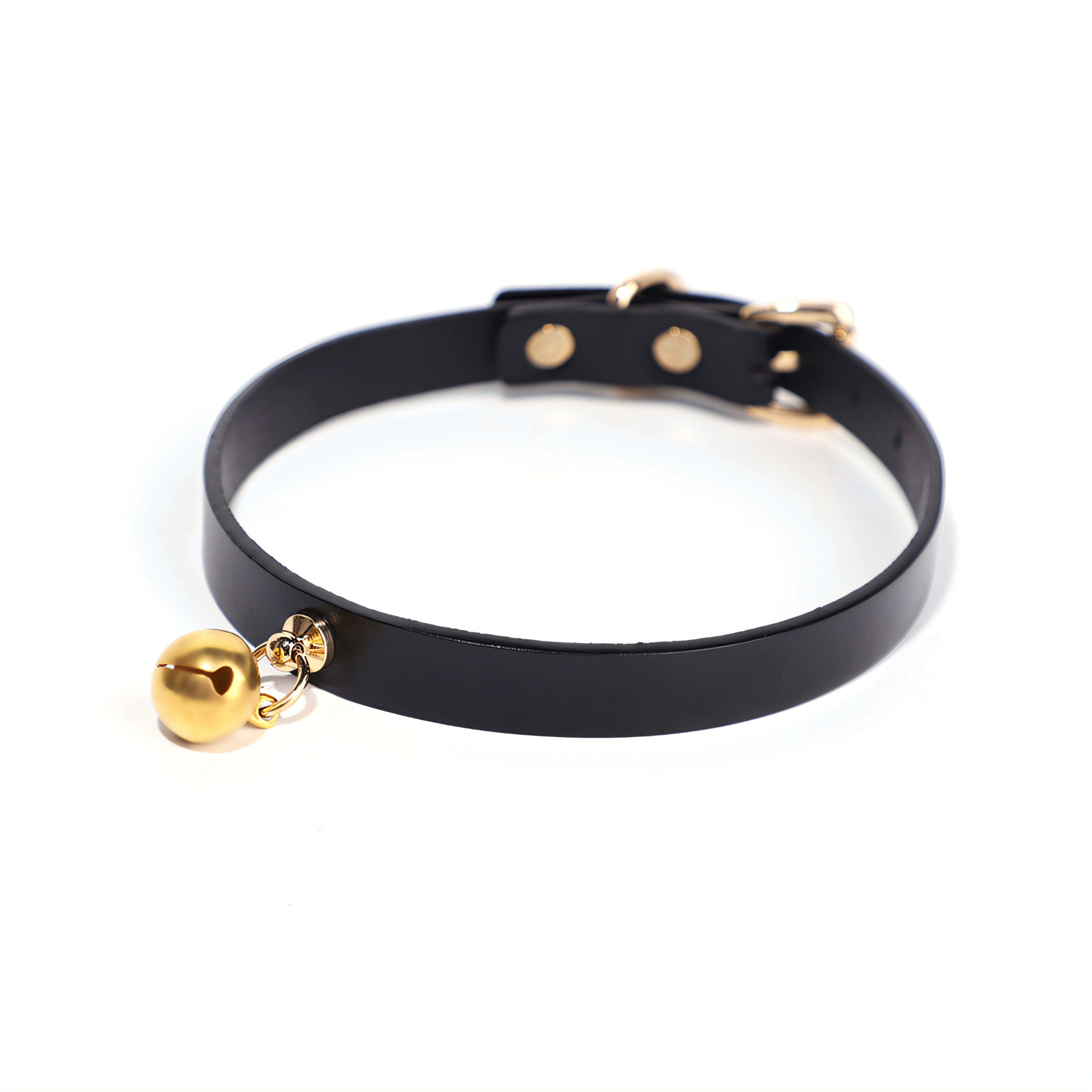 真皮复古铃铛项圈choker项链男女皮质高级黑色带牵引 Save