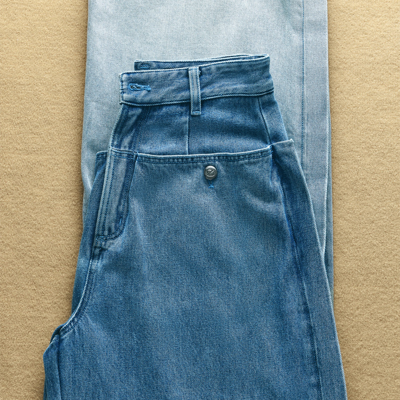 渐变高腰显瘦大口袋舒适纯棉牛仔裤 lost echo春夏时尚 女 阔腿裤由