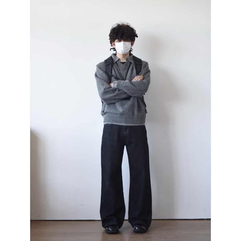 RTIMFD复古假两件v领翻领毛衣 上衣慵懒风外套 cleanfit高级针织衫