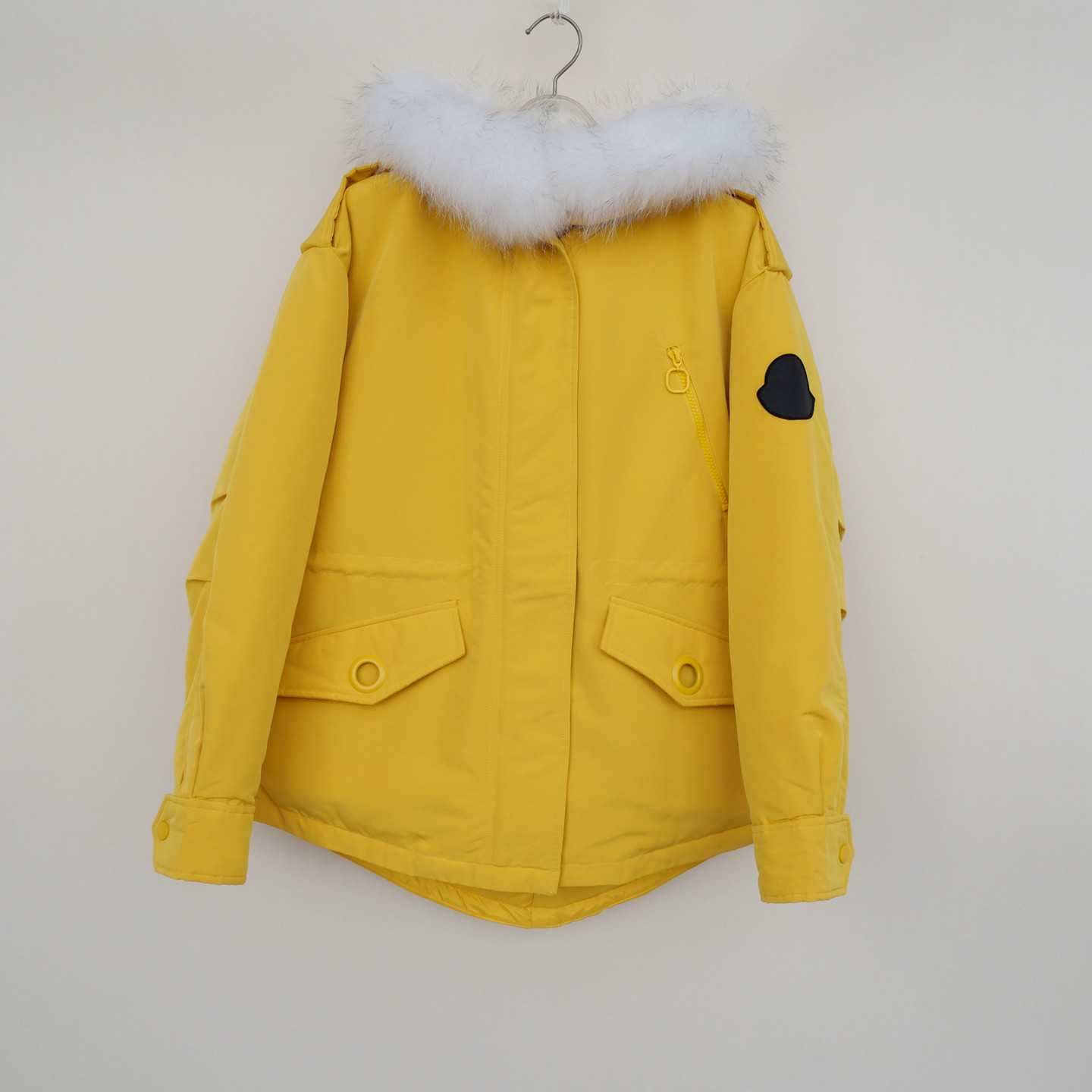 拉系列SML专柜正品 羽绒服4A8613黄色 女冬80绒真毛领厚柔宽松短款由