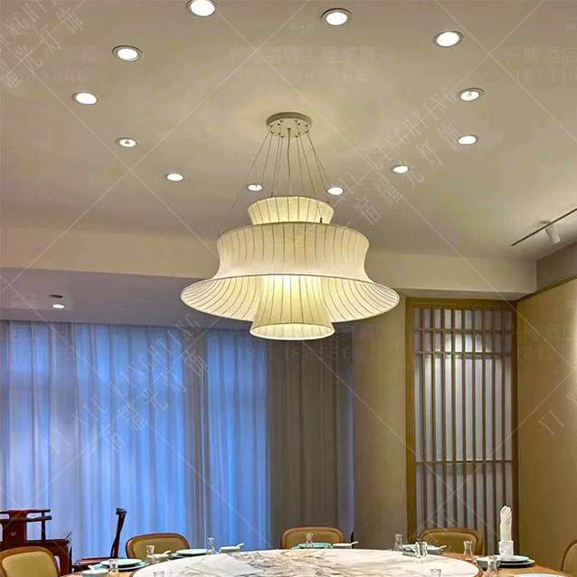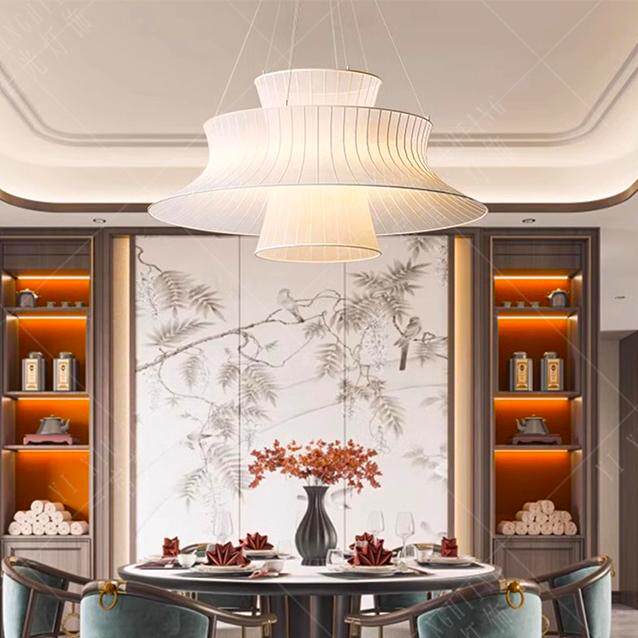 新中式 饰灯茶室饭店圆形简约布艺灯 餐厅吊灯酒店餐饮包厢宴会厅装