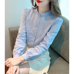 为您提供商品法式 白衬衫 女春装 2026年新款 职业上衣 刺绣木耳边立领纯棉衬衣长袖的详细介绍,