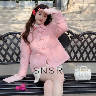 毛呢外套羊毛呢女甜美气质长袖 大衣外套 圣妮思2025春秋中式 SNSR由