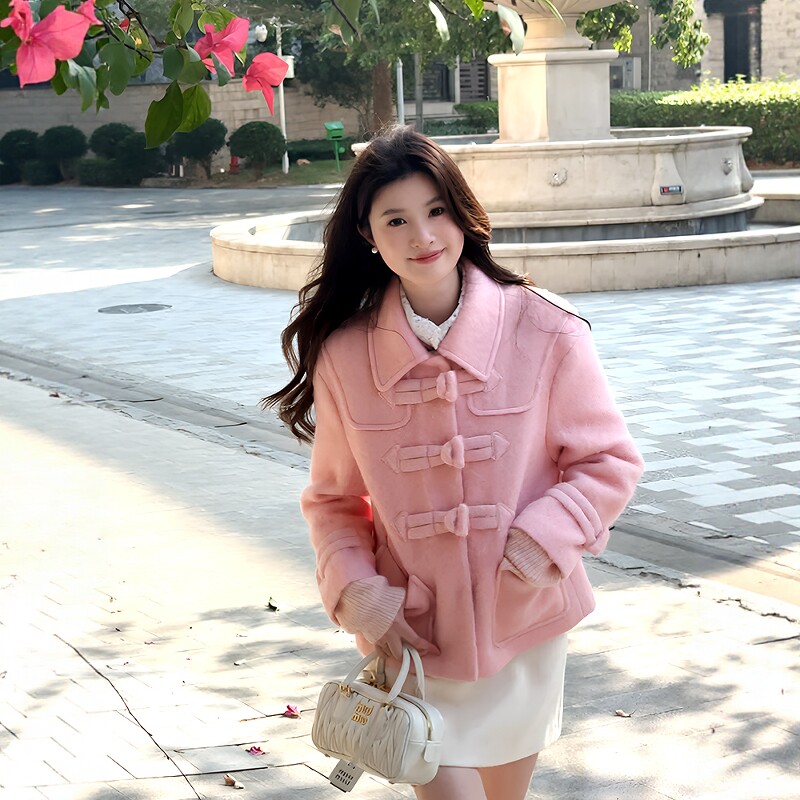 omont蛋挞家50%绵羊毛复古牛角扣毛呢外套2025冬季 短大衣 收腰修身