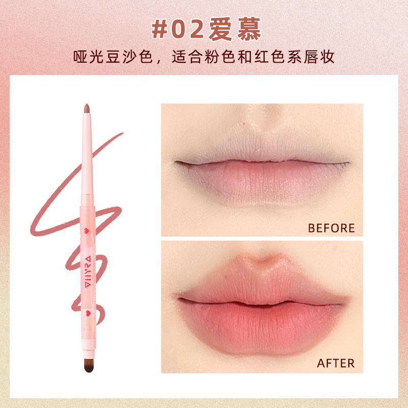 双头唇线笔带唇刷丰唇防水持久不掉色裸色唇刷唇笔一体勾线口红笔