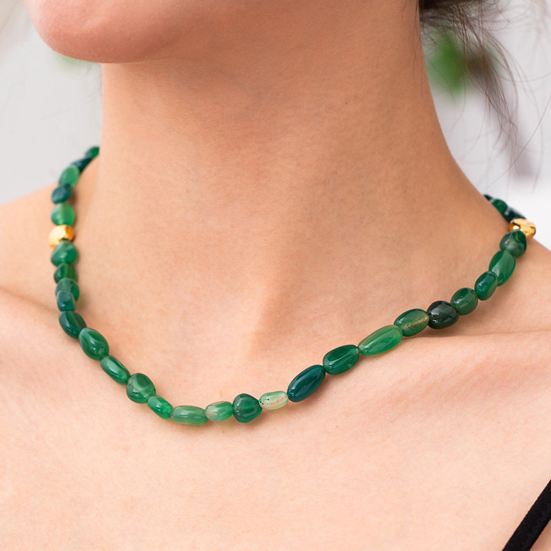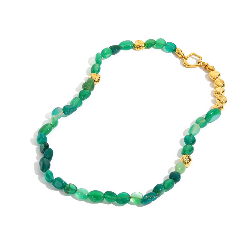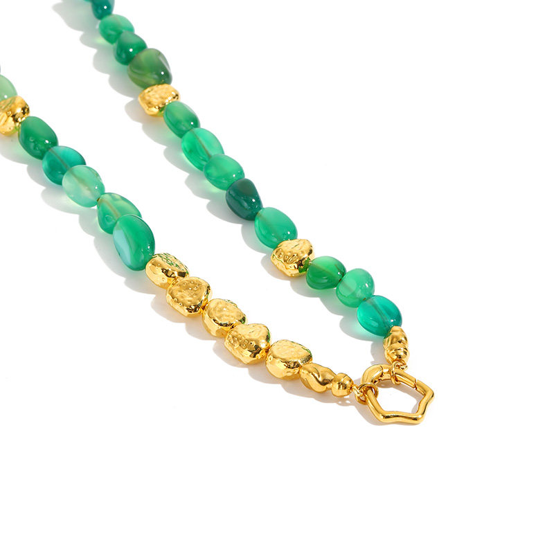 FOR 复古绿翡翠色石头拼接金属串珠项链 DAYS