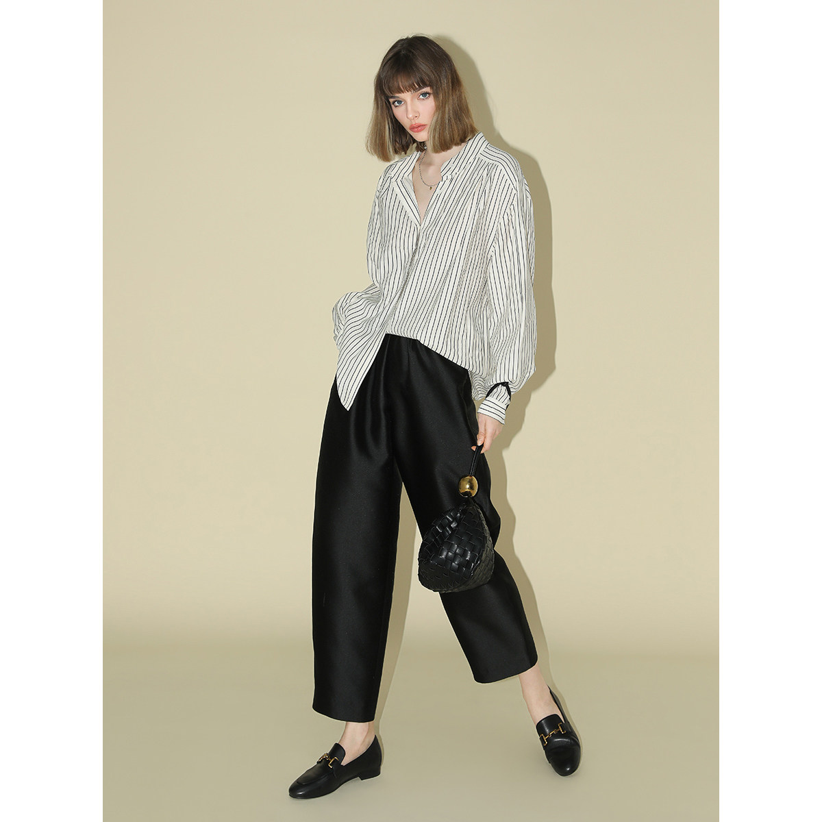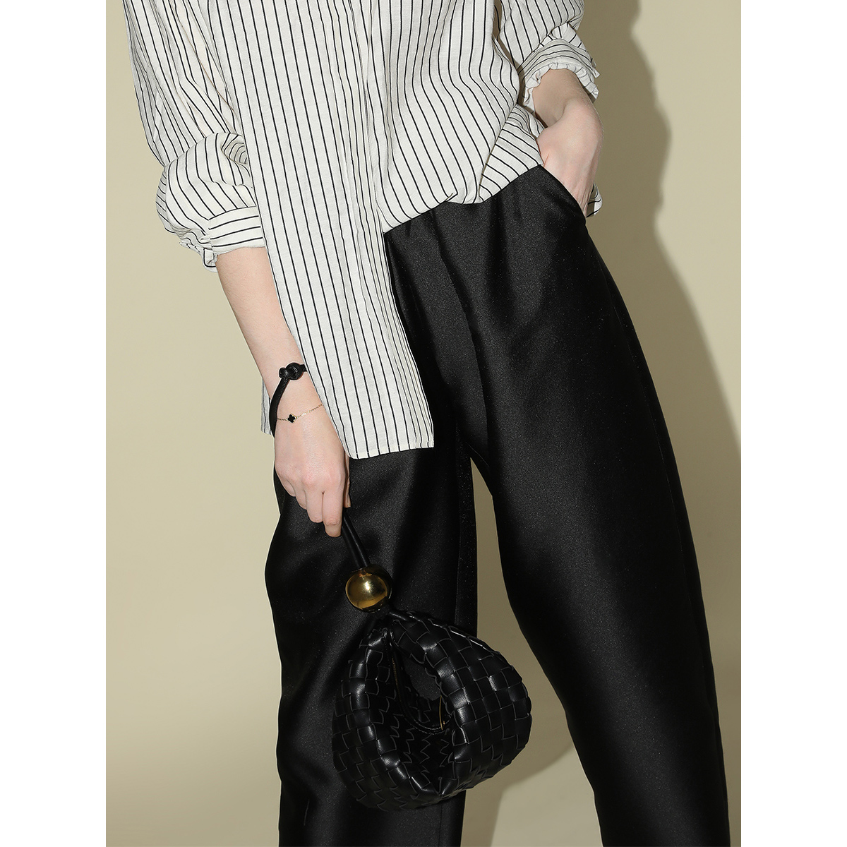 COCOBELLA职场通勤黑色西裤 女丝光质感宽松烟管裤 PA547 3件5折