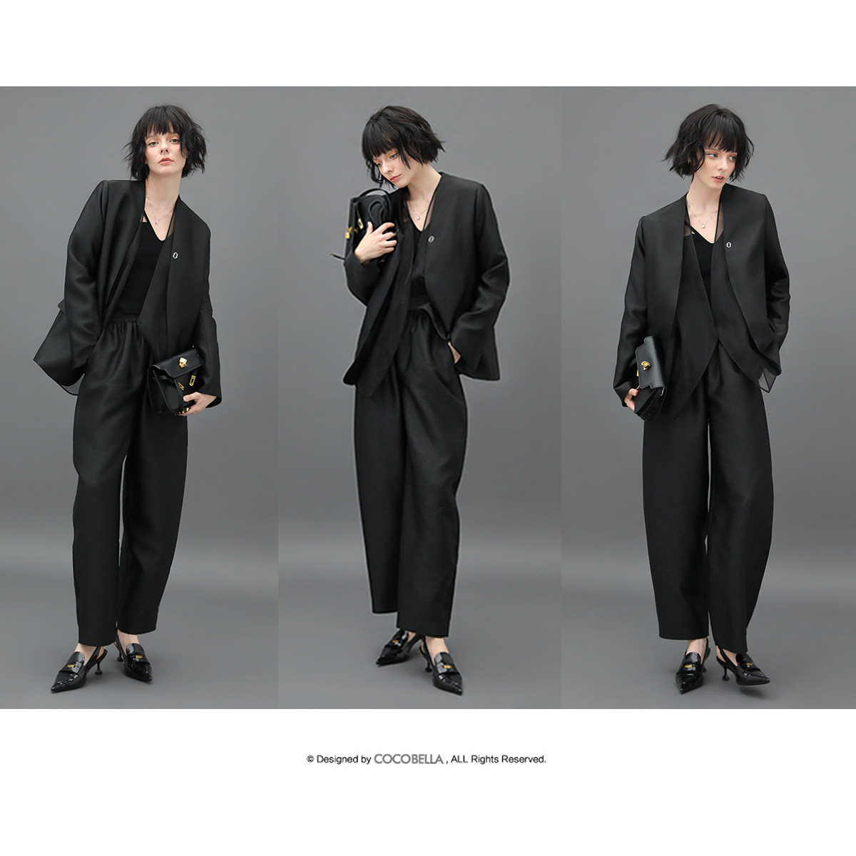 COCOBELLA职场通勤黑色西裤 女丝光质感宽松烟管裤 PA547 3件5折由