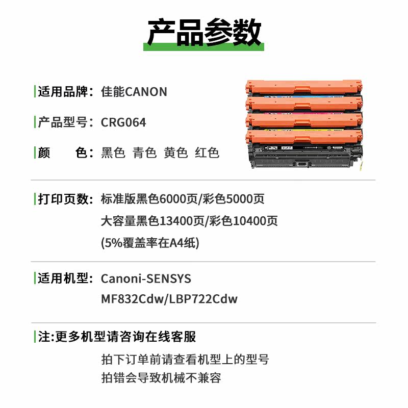 LBP722Cdw打印机碳粉盒MF735Cx SENSYS MF832dw墨粉 CRG064 适用佳能mf832cdw硒鼓 品质 原装 LBP722墨盒由
