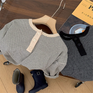 为您提供商品儿童春秋季 男女童宝宝撞色纽扣圆领洋气百搭亲子家上衣 条纹长袖的详细介绍,