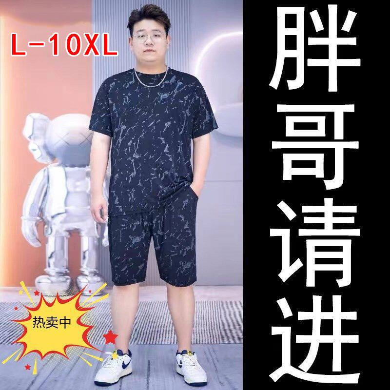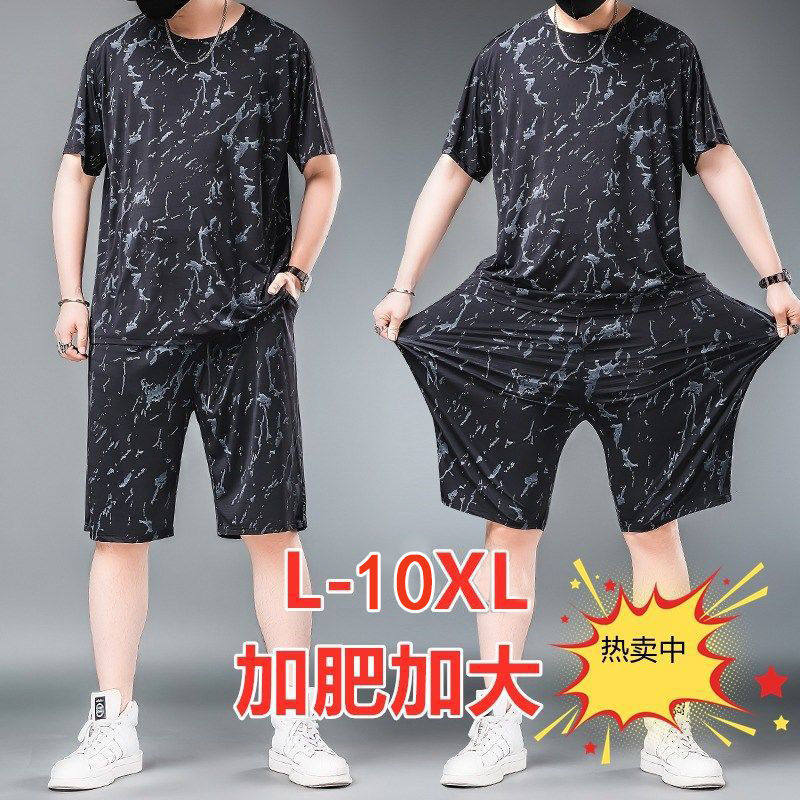 两件装 夏季 短裤 冰丝网眼T袖 加肥加大宽松休闲运动套装 男肥佬大码