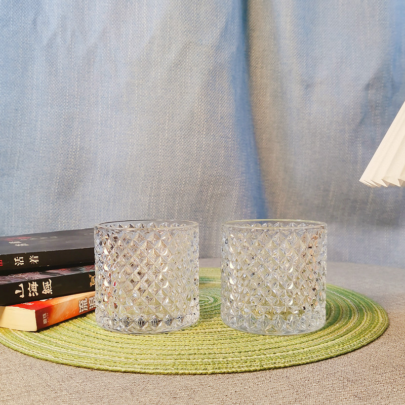 300ml复古酒杯家用大容量水杯ins风饮料杯 琥珀色菱形纹玻璃杯150